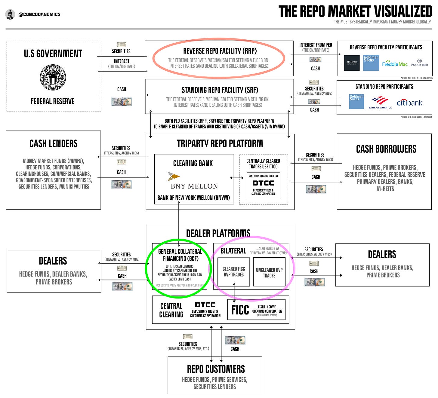 When the supply of bills dries up, the bilateral repo market acts as a sponge, absorbing excess cash that would otherwise make it into the t-bill market. This is what we’ve witnessed just recently in Conks' U.S. Money Market complex.
