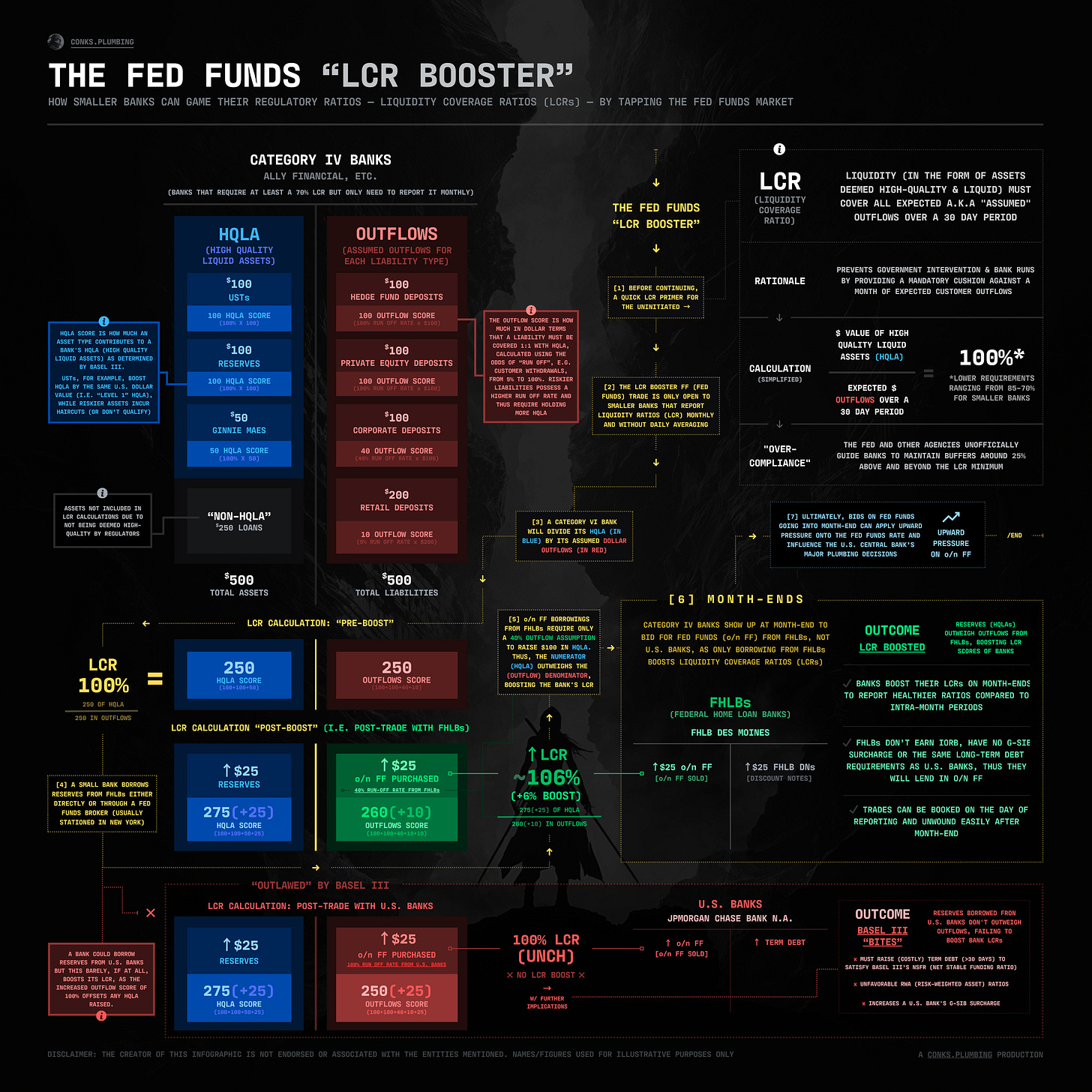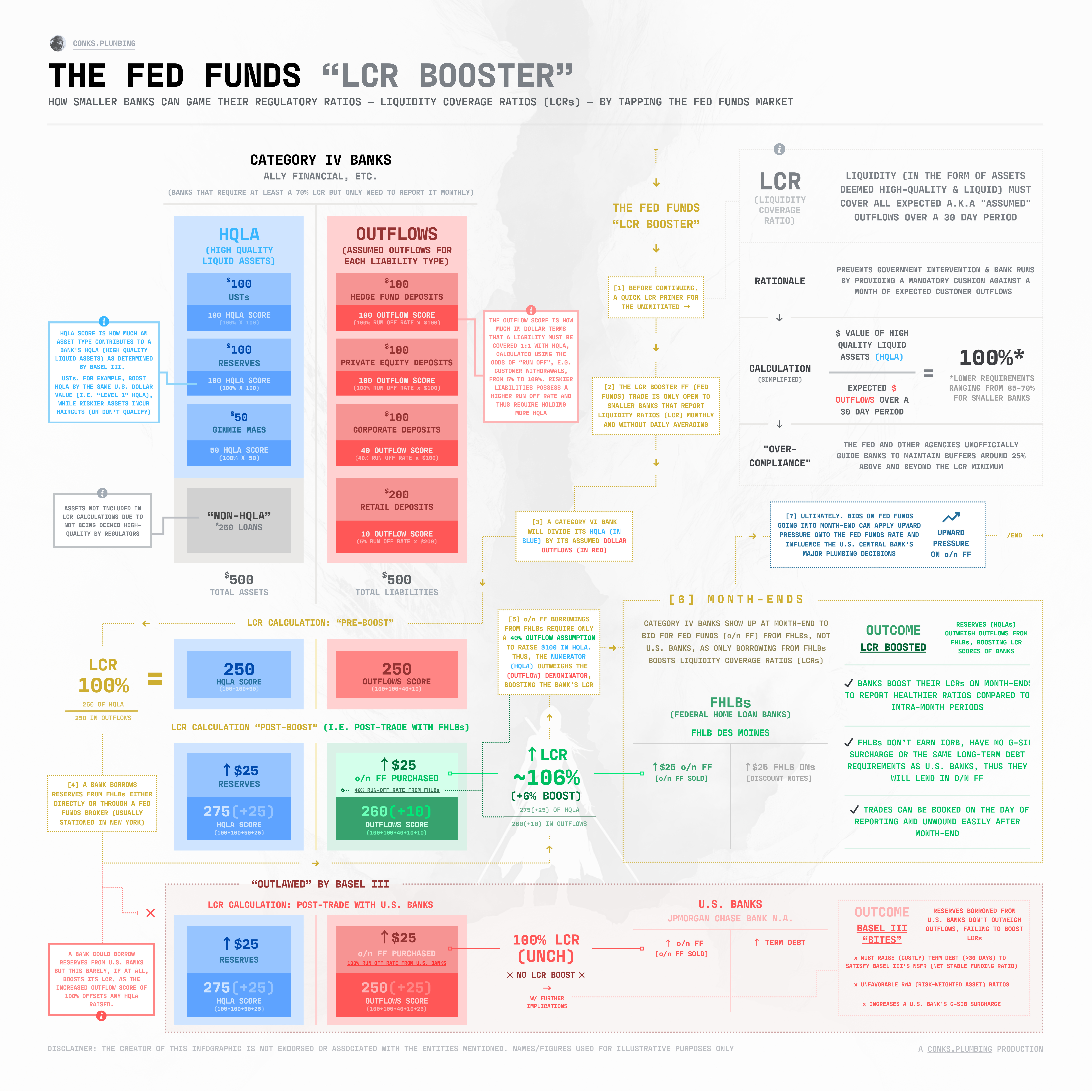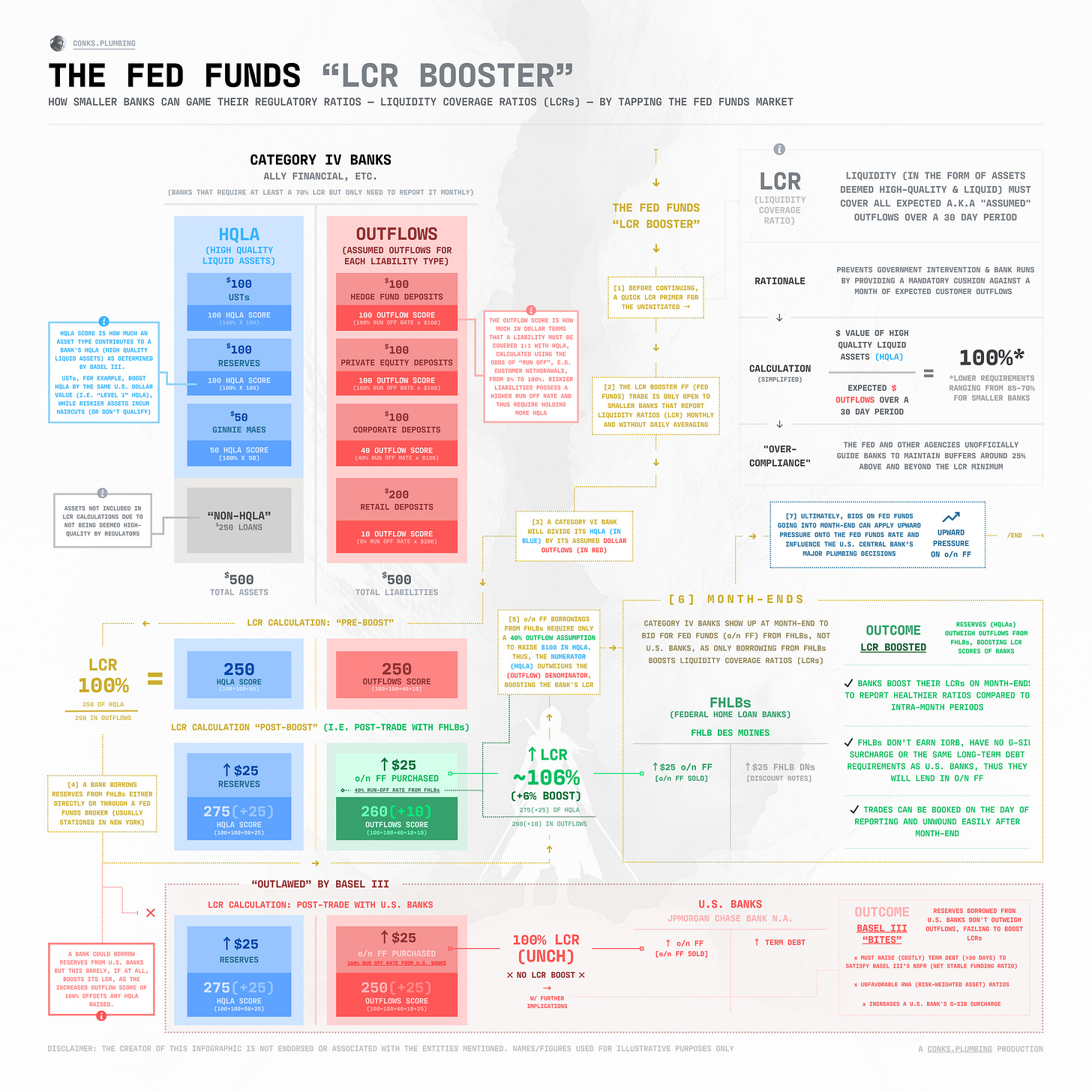 InfographicsInfographics: The Fed Funds "Liquidity Booster"how smaller banks can game their regulatory ratios (LCRs) by tapping the fed funds marketConksOct 16, 2025353Share— created as part of The Fed’s New Target (upcoming)