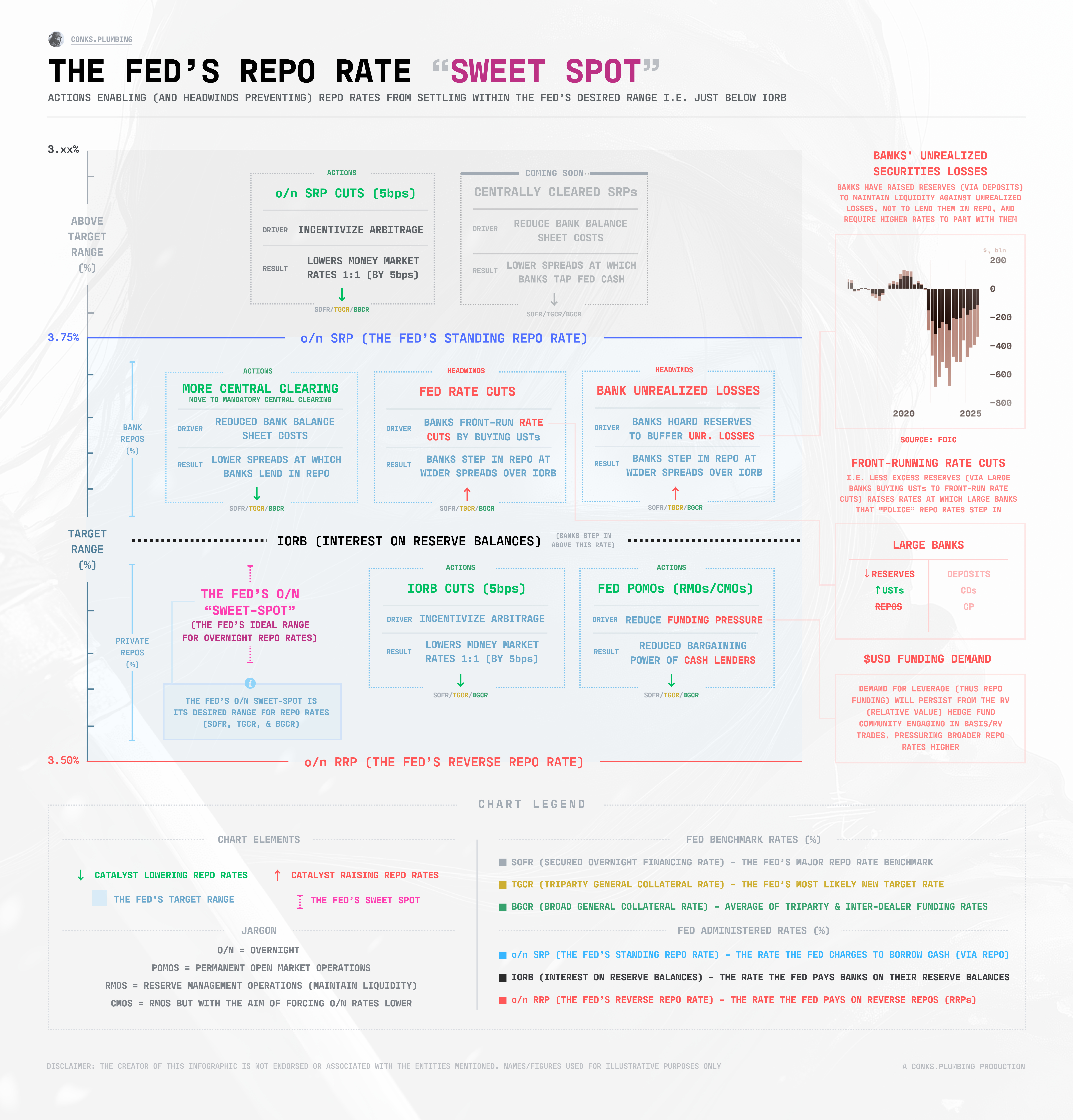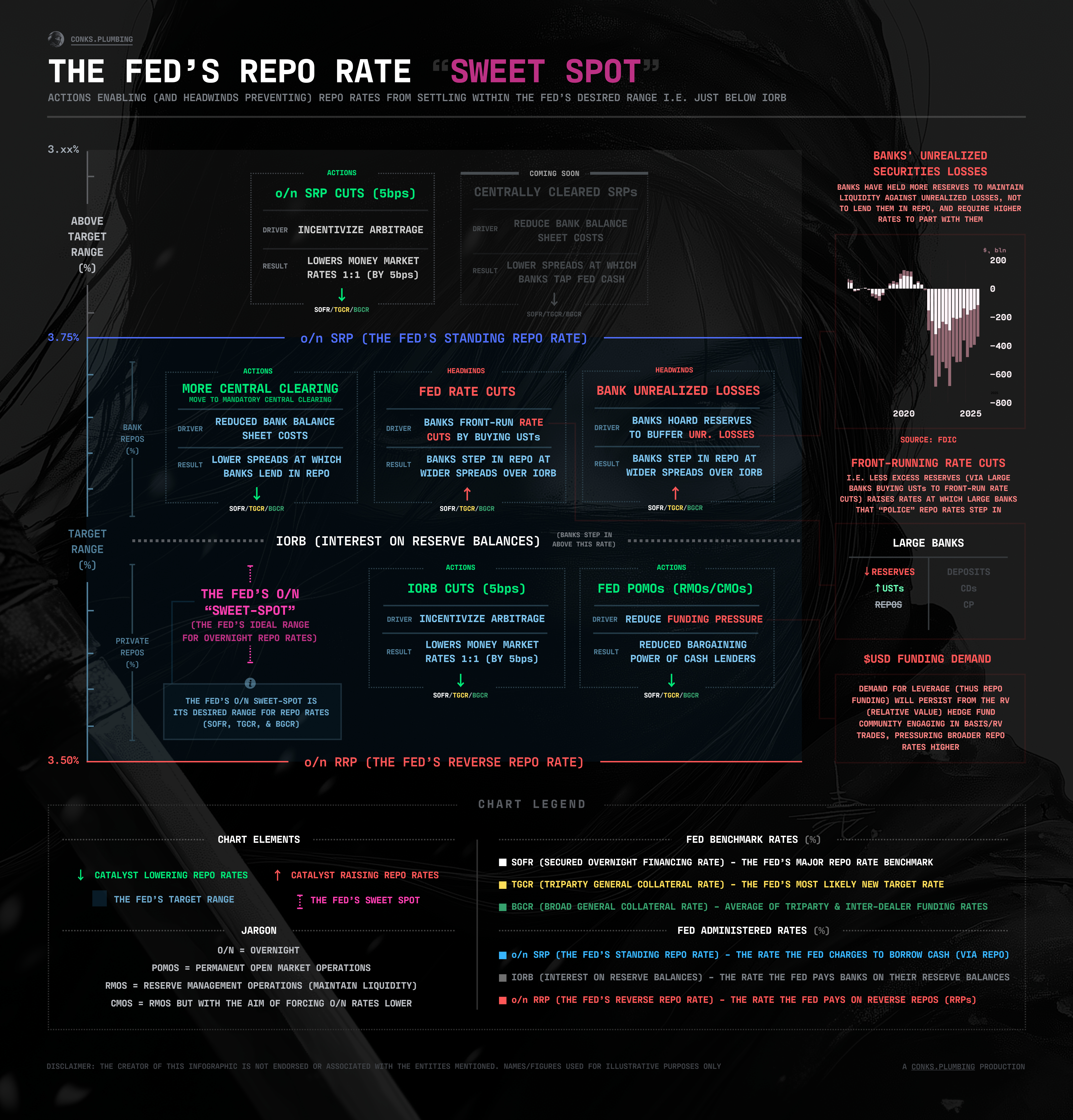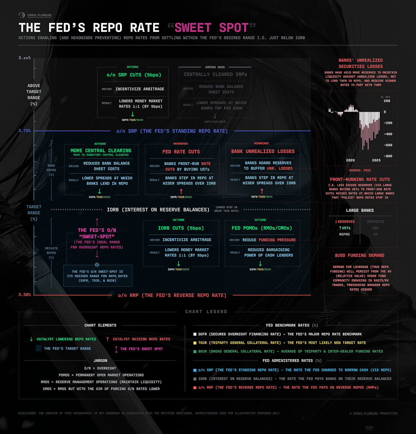 InfographicsInfographics: The Fed's Repo Rate "Sweet Spot"how the Fed will force its repo rate benchmarks to print within its desired sweet spot, i.e. just below IORB, despite opposing forcesConksDec 28, 2025262Share— created as part of The Fed’s New Target (upcoming)