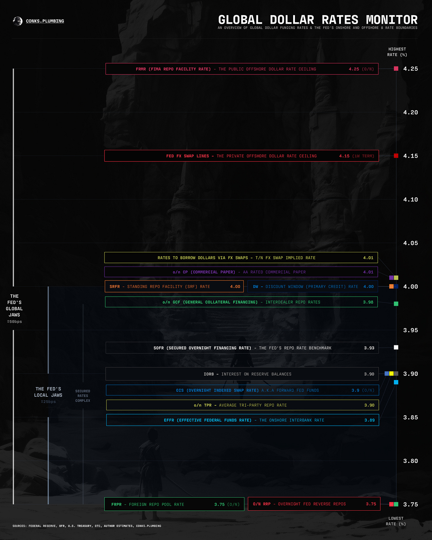 Market participants believe in the Fed & Treasury’s efforts to calm the short end, much like interventions across the rest of the curve. Treasury buybacks, deferred increases in duration (i.e. note and bond) issuance, and the U.S. Empire continuing to avoid fiscal dominance have placed a cap on yields. Yet, their latest incoming alchemy, the rework of a key regulatory ratio that banks can adopt as early as Q1 2026, may not deliver the “juice” leaders envision. The Fed’s Relief Valve, a reduction of its SLR (supplementary leverage ratio) — a ratio that requires banks to hold extra capital whenever they expand their balance sheets — will only be partially opened.