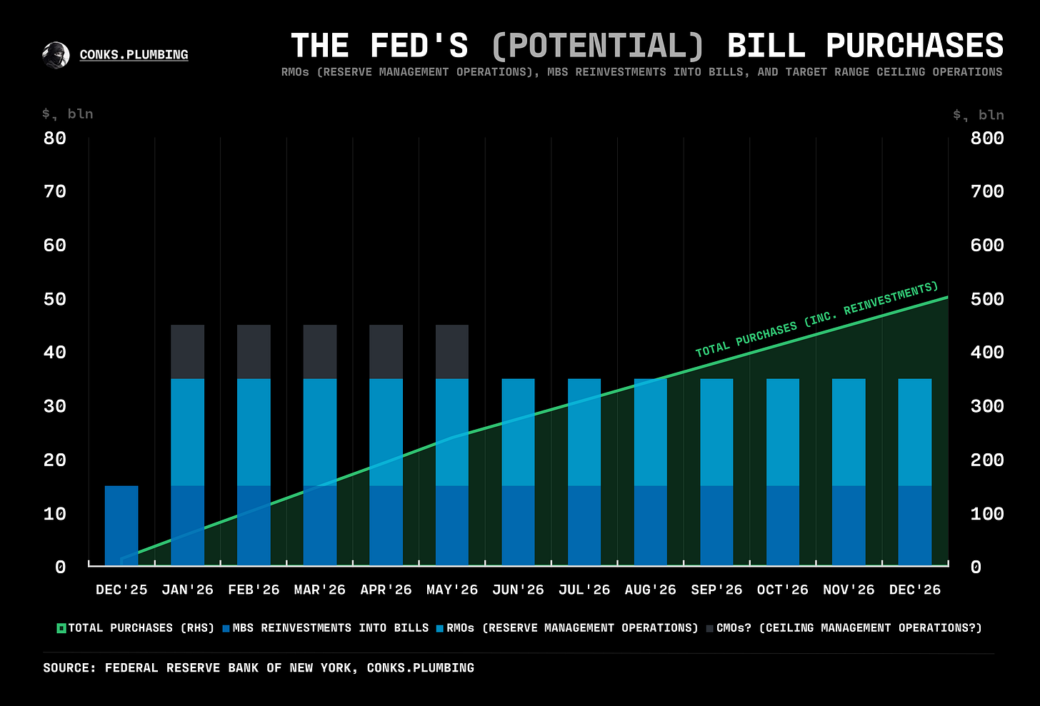 From the Conks feed (chat): how to monitor the Fed’s expected reserve injections (RMOs), a SOFR-FF basis primer, and more…