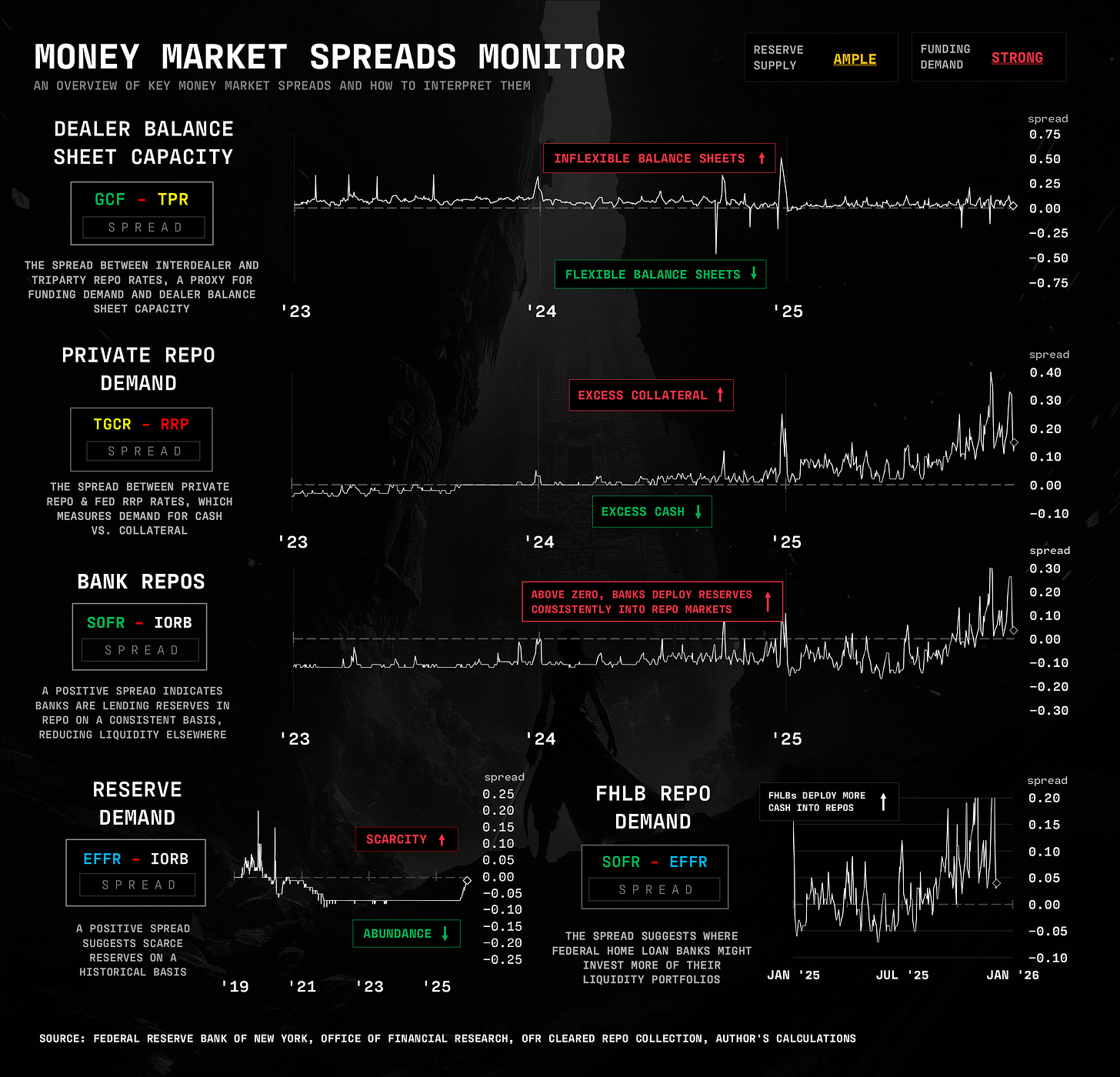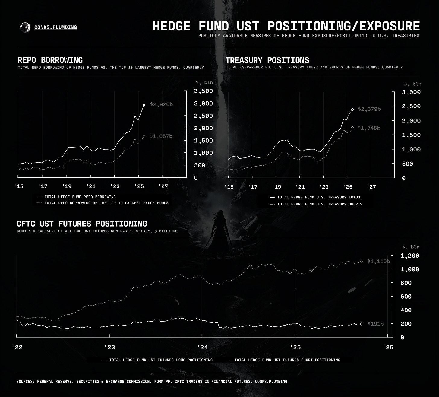 The good news is that, regardless of the SLR, Conks’ major plumbing gauge — the swap spread curve — has revealed officials are #winning their battle against duration. The major forces that pushed swap spreads into highly negative territory — signaling greater plumbing frictions — have died down. Deficit fears have dwindled, while Treasury buybacks only grow from here. Increases in UST coupon issuance sizes remain on pause, the Fed’s QT has concluded, and rumors have emerged of a switch to a secured Fed target rate. Swap spreads have widened (rallied) significantly, fueled by intense optimism around both SLR & non-SLR (“non-relief valve”) catalysts. This widening should slow down until regulators realize — as usual, after implementation — that more juice will be required in the form of easier regulations, prompting the next round of deregulatory hype.