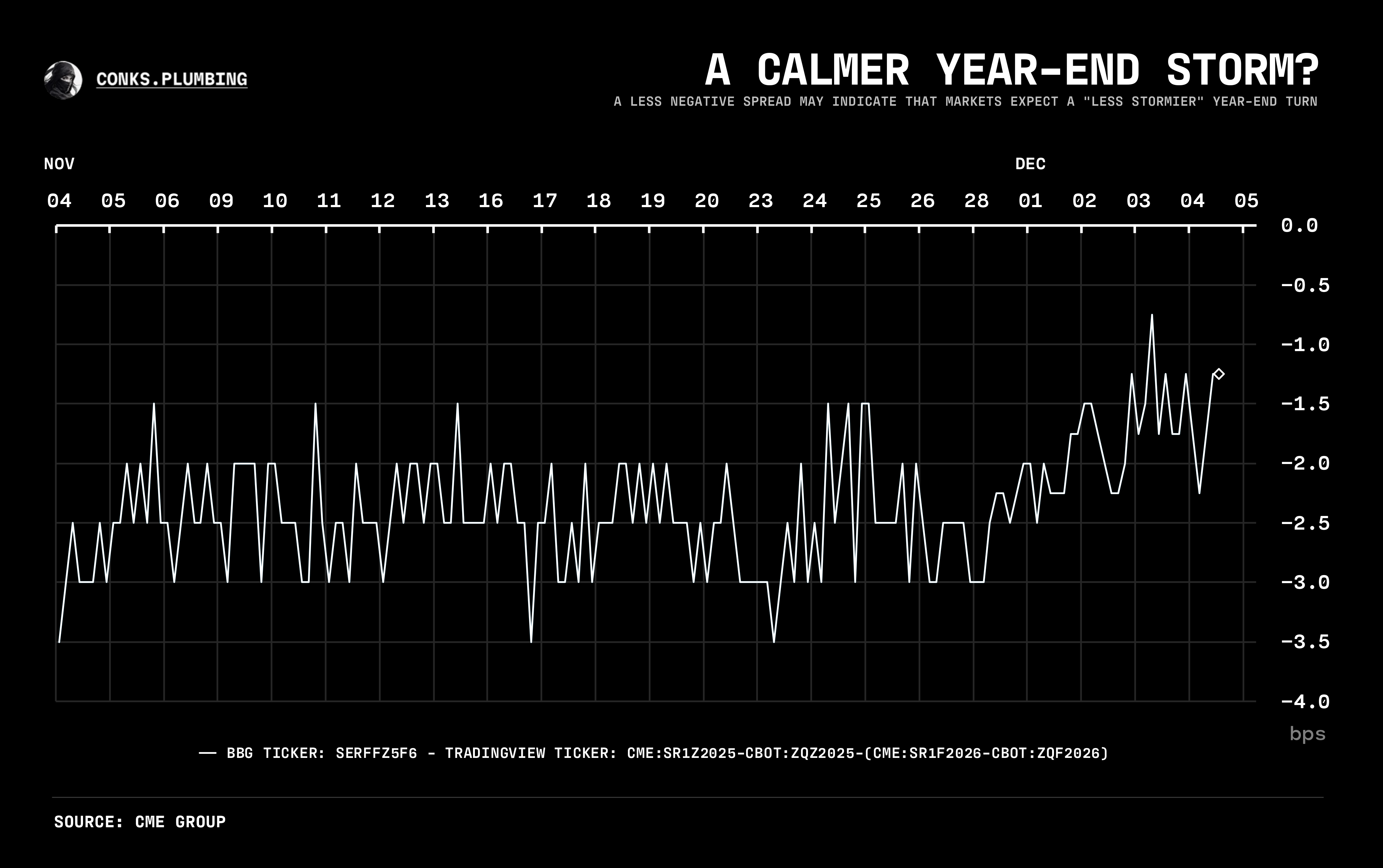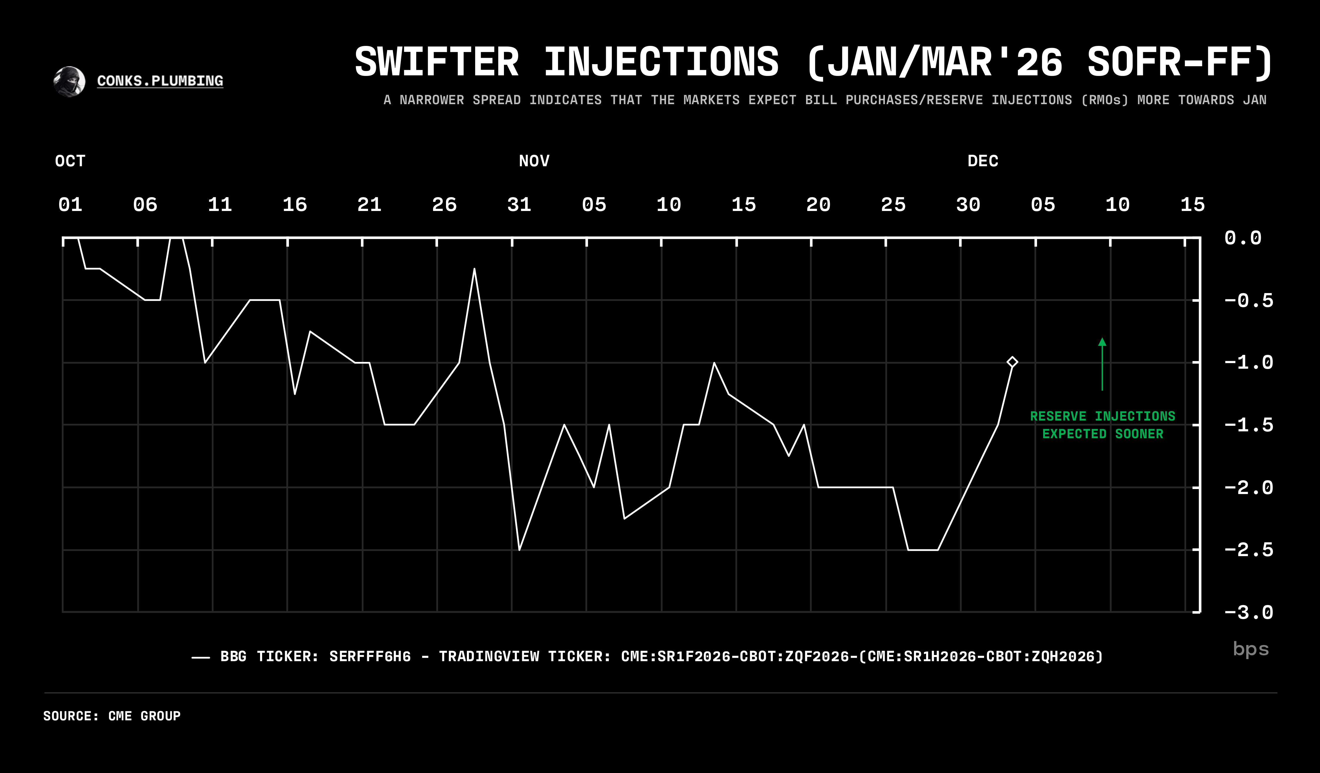 observable via BBG: SERFFZ5F6 - TradingView: CME:SR1Z2025-CBOT:ZQZ2025-(CME:SR1F2026-CBOT:ZQF2026)