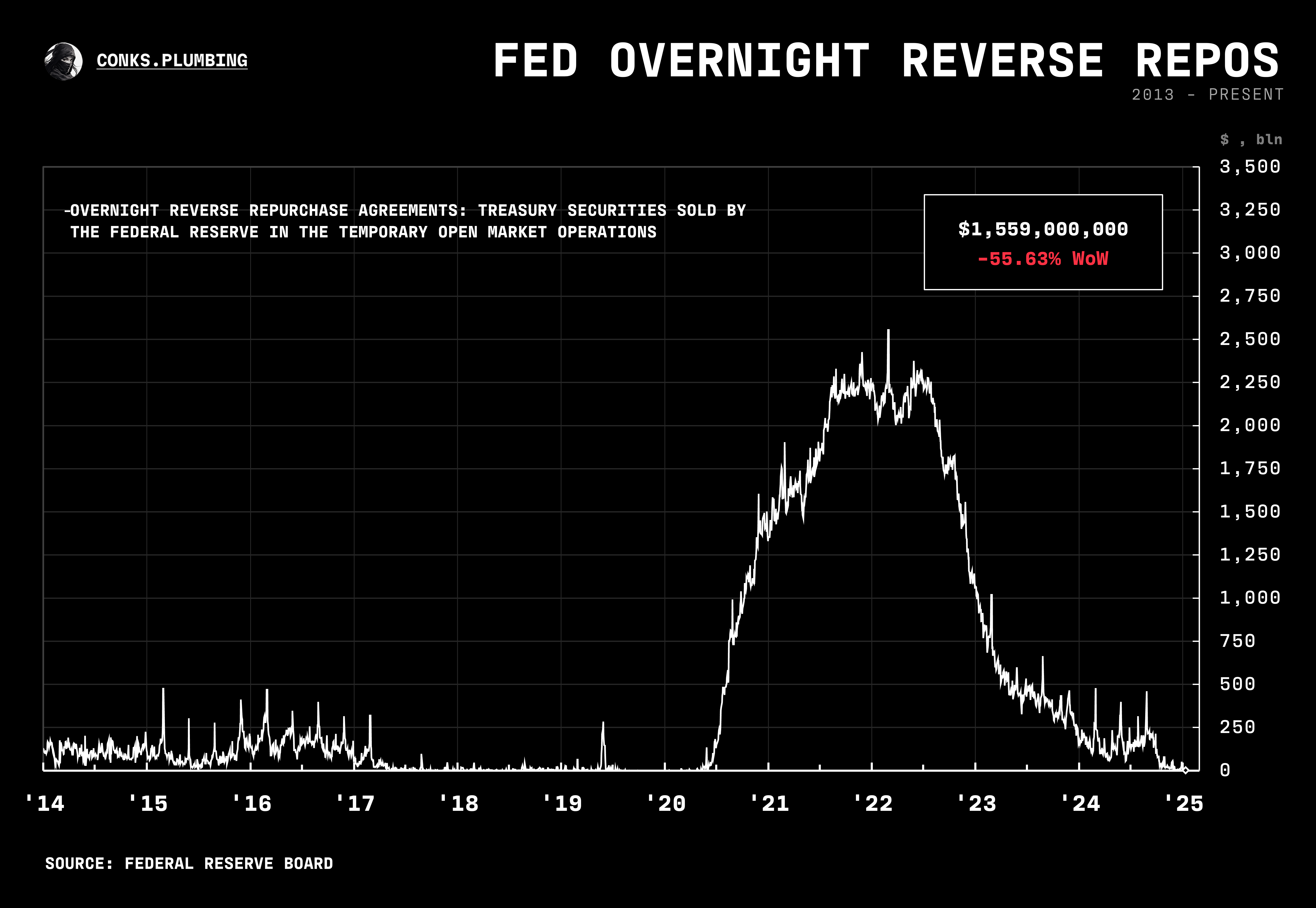 Instead, the worst scenario would be UST cash bond and futures prices detaching just as basis traders grow most sensitive to repo shocks (following quarter-ends after the latest contract rolls), a scenario most likely to knock traders out of positions. Trump’s tariff cascade just happened to materialize shortly after a futures roll, creating a genuine threat of a basis trade unwind. But Trump soon capitulated following bond market jitters, presumably after some basis positions benefited from volatility and a yield curve steepener. These trades likely experienced minimal turmoil because overall market structure had been supportive of leverage, allowing the RV community to continue achieving 60x leverage and generating >5% returns with comfort.